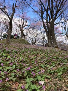 六万騎山では麓から山頂までカタクリを見ることができます。